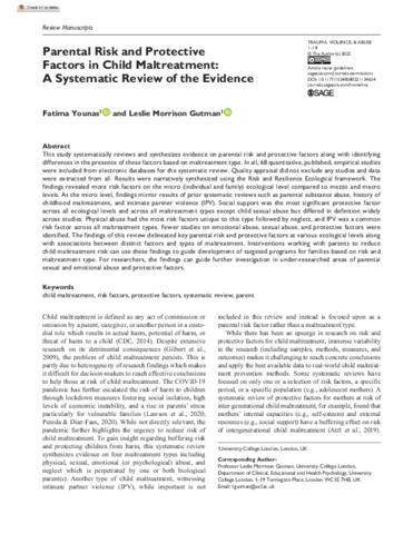 Title: | Parental Risk and Protective Factors in Child Maltreatment: A Systematic Review of the Evidence |