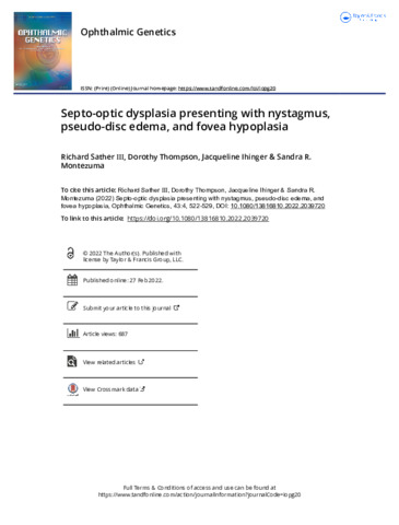 Title: | Septo-optic dysplasia presenting with nystagmus, pseudo-disc edema, and fovea hypoplasia |