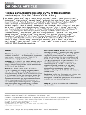 Title: | Residual Lung Abnormalities Following COVID-19 Hospitalization: Interim Analysis of the UKILD Post-COVID Study |