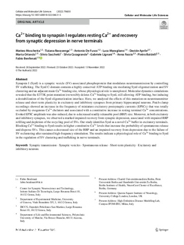 Title: | Ca2+ binding to synapsin I regulates resting Ca2+ and recovery from synaptic depression in nerve terminals |