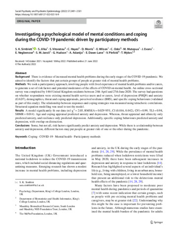 Investigating a psychological model of mental conditions and coping during the COVID-19 pandemic driven by participatory met.pdf - Published Version Download (804kB) | Preview |