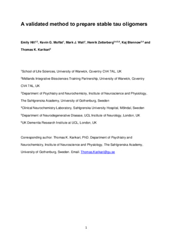 Title: | A Validated Method to Prepare Stable Tau Oligomers |