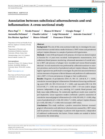 | Title: | Association between subclinical atherosclerosis and oral inflammation: A cross-sectional study |