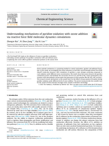 Keywords: | Pyridine oxidation, Ozone assisted combustion, Reactive force field, Molecular dynamicsNOx |