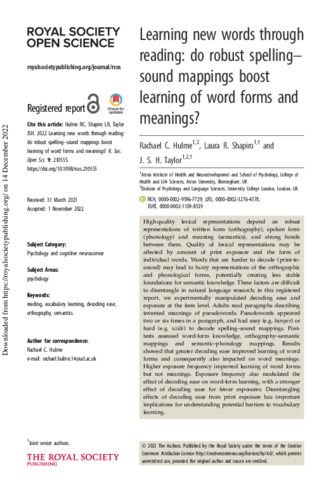 Learning new words through reading: do robust spelling–sound mappings boost learning of word forms and meanings?