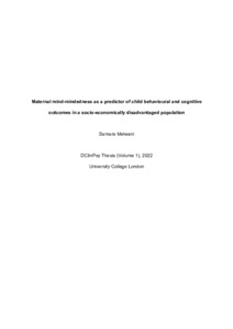 Title: | Maternal mind-mindedness as a predictor of child behavioural and cognitive outcomes in a socio-economically disadvantaged population |