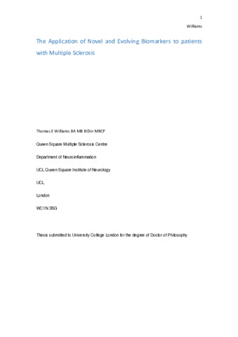 Title: | The Application of Novel and Evolving Biomarkers to patients with Multiple Sclerosis |