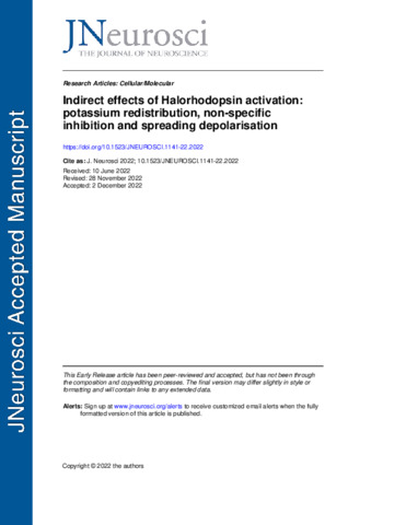 Indirect effects of Halorhodopsin activation: potassium redistribution, non-specific inhibition and spreading depolarisation.