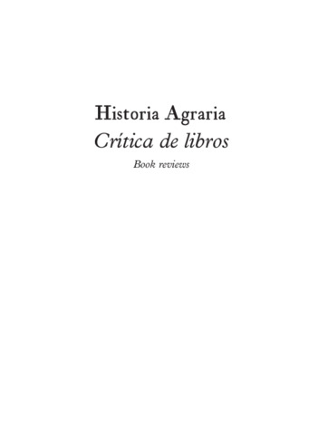 Book reviews - Crítica de libros - Crítica de livros (Historia Agraria, 88).
