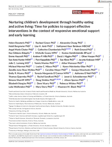 Health Social Care Comm - 2022 - Skouteris - Nurturing children s development through healthy eating and active living .pdf - Published Version Download (649kB) | Preview |