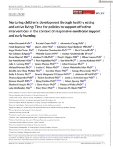 Title: | Nurturing children's development through healthy eating and active living: Time for policies to support effective interventions in the context of responsive emotional support and early learning |
