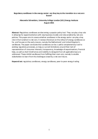 Title: | Regulatory sandboxes in the energy sector: are they key to the transition to a net zero future? |