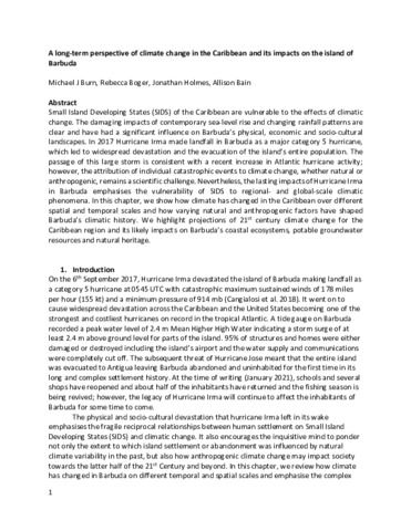 Title: | A long-term perspective of climate change in the Caribbean and its impacts on the island of Barbuda |