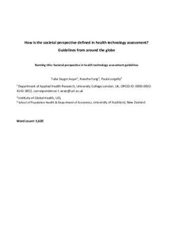 Title: | How is the Societal Perspective Defined in Health Technology Assessment? Guidelines from Around the Globe |