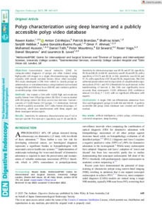 Kader_Digestive Endoscopy - 2022 - Polyp characterization using deep learning and a publicly accessible polyp video.pdf Download (5MB) | Preview |