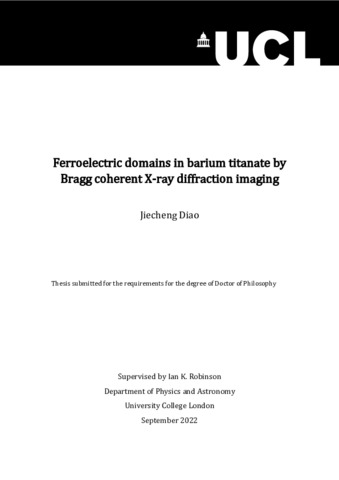 Title: | Ferroelectric domains in barium titanate by Bragg coherent X-ray diffraction imaging |