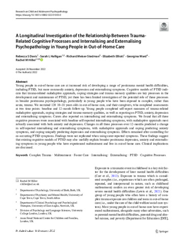 A Longitudinal Investigation of the Relationship Between Trauma-Related Cognitive Processes and Internalising and Externalising Psychopathology in Young People in Out-of-Home Care.