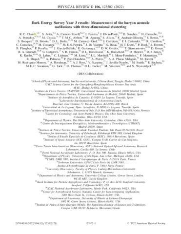 Title: | Dark Energy Survey Year 3 results: Measurement of the baryon acoustic oscillations with three-dimensional clustering |