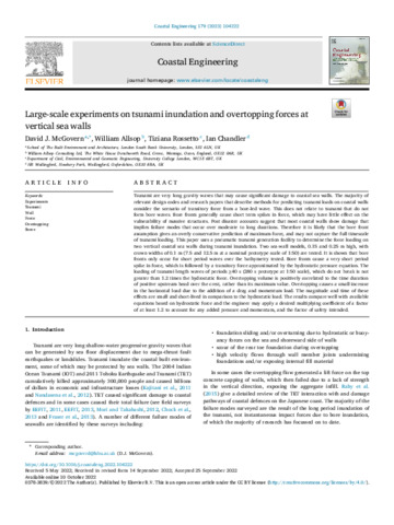 Large-scale experiments on tsunami inundation and overtopping forces at vertical sea walls.