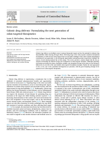 | Title: | Colonic drug delivery: Formulating the next generation of colon-targeted therapeutics |