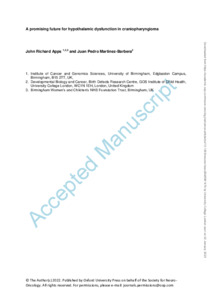Title: | A promising future for hypothalamic dysfunction in craniopharyngioma |