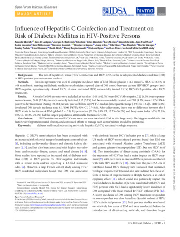 Influence of Hepatitis C Coinfection and Treatment on Risk of Diabetes Mellitus in HIV-Positive Persons.