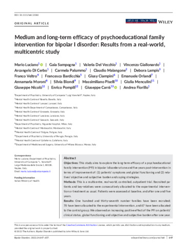 Medium and long-term efficacy of psychoeducational family intervention for bipolar I disorder: Results from a real-world, multicentric study.