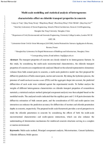 Multi-scale modelling and statistical analysis of heterogeneous characteristics effect on chloride transport properties in concrete.
