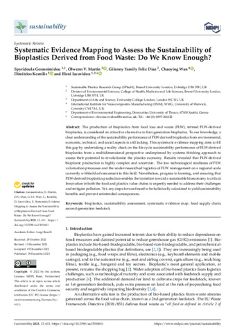 | Title: | Systematic Evidence Mapping to Assess the Sustainability of Bioplastics Derived from Food Waste: Do We Know Enough? |