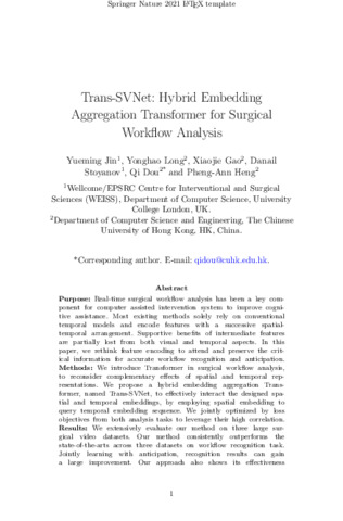 | Title: | Trans-SVNet: hybrid embedding aggregation Transformer for surgical workflow analysis |