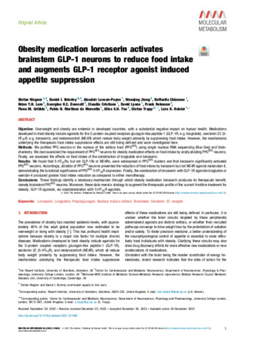 Title: | Obesity medication lorcaserin activates brainstem GLP-1 neurons to reduce food intake and augments GLP-1 receptor agonist induced appetite suppression |