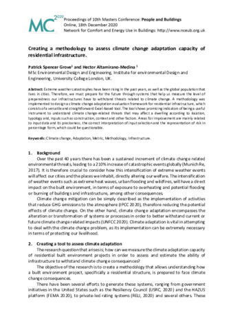 | Title: | Creating a methodology to assess climate change adaptation capacity of residential infrastructure |