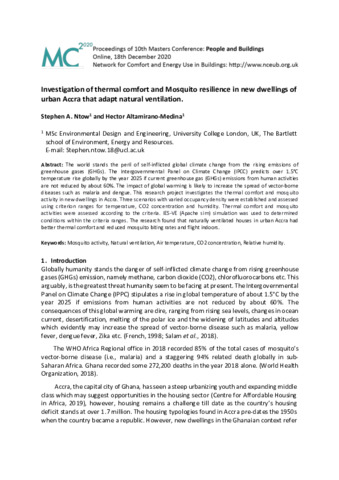 Title: | Investigation of thermal comfort and Mosquito resilience in new dwellings of urban Accra that adapt natural ventilation |