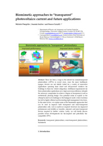 Title: | Biomimetic Approaches to "Transparent" Photovoltaics: Current and Future Applications |
