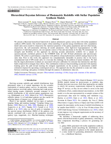 Title: | Hierarchical Bayesian Inference of Photometric Redshifts with Stellar Population Synthesis Models |