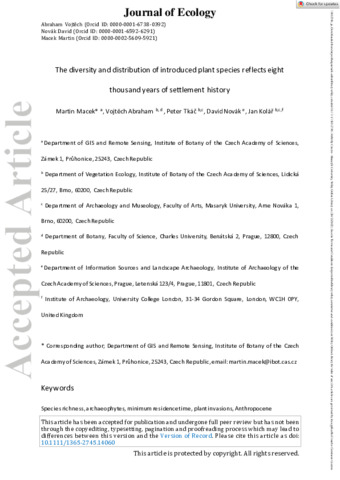 Journal of Ecology - 2022 - Macek - The diversity and distribution of introduced plant species reflects eight thousand.pdf - Accepted Version Download (2MB) | Preview |