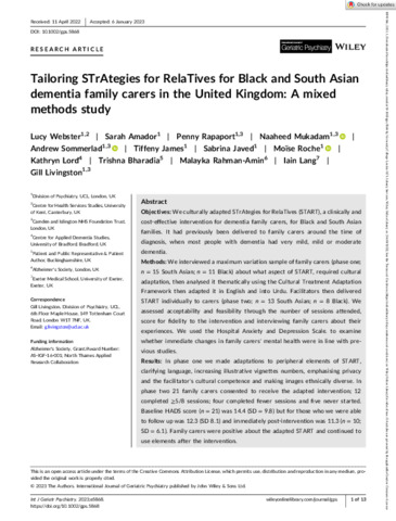 Int J Geriat Psychiatry - 2023 - Webster - Tailoring STrAtegies for RelaTives for Black and South Asian dementia family.pdf - Published Version Download (785kB) | Preview |