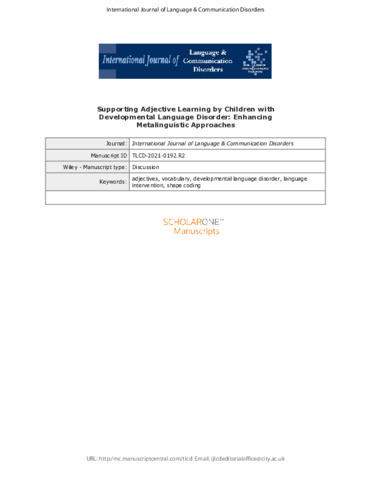 Title: | Supporting adjective learning by children with Developmental Language Disorder: Enhancing metalinguistic approaches |