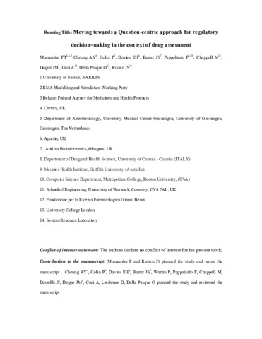 | Title: | Moving Toward a Question-Centric Approach for Regulatory Decision Making in the Context of Drug Assessment |