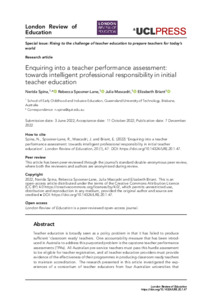 Enquiring into a teacher performance assessment: towards intelligent professional responsibility in initial teacher education.
