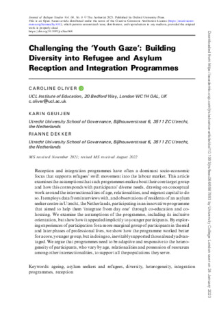 Title: | Challenging the ‘Youth Gaze’: Building Diversity into Refugee and Asylum Reception and Integration Programmes |