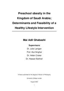 | Title: | Preschool obesity in the Kingdom of Saudi Arabia; Determinants and Feasibility of a Healthy Lifestyle Intervention |