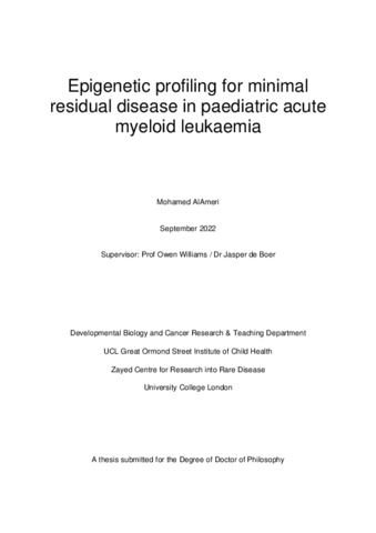 Title: | Epigenetic profiling for minimal residual disease in paediatric acute myeloid leukaemia |