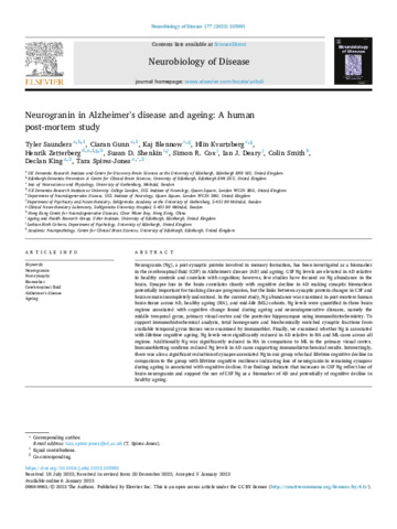 | Title: | Neurogranin in Alzheimer's disease and ageing: A human post-mortem study |
