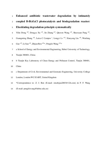 Title: | Enhanced antibiotic wastewater degradation by intimately coupled B-Bi3O4Cl photocatalysis and biodegradation reactor: Elucidating degradation principle systematically |