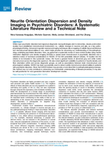 Title: | Neurite Orientation Dispersion and Density Imaging in Psychiatric Disorders: A Systematic Literature Review and a Technical Note |