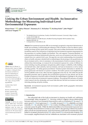 Title: | Linking the Urban Environment and Health: An Innovative Methodology for Measuring Individual-Level Environmental Exposures |