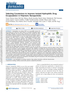 Title: | Selecting Counterions to Improve Ionized Hydrophilic Drug Encapsulation in Polymeric Nanoparticles |