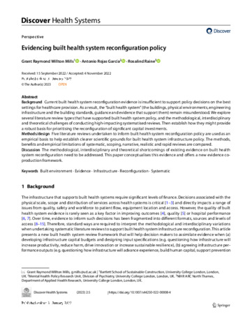Title: | Evidencing built health system reconfiguration policy |