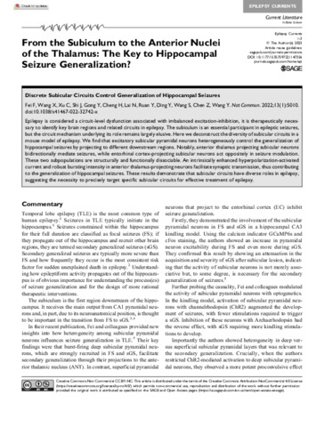 | Title: | From the Subiculum to the Anterior Nuclei of the Thalamus: The Key to Hippocampal Seizure Generalization? |